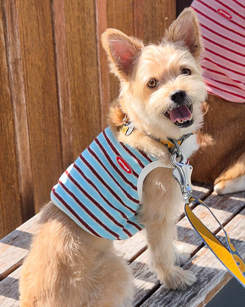 【預購】毛巾布條紋上衣- 紅粉 / 藍黃 / 藍咖