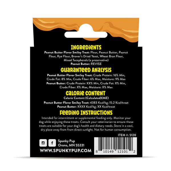 花生醬風味笑臉餅乾:麵粉、花生、花生醬、花生粉、黑麥粉、啤酒酵母乾、麥麩粉、混合生育酚(作為防腐劑)