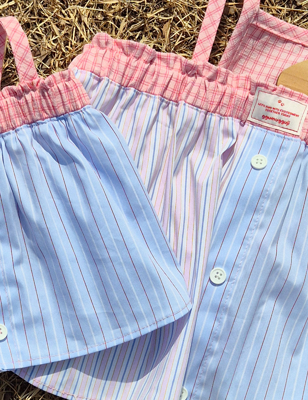 【預購】夢幻粉紫條紋撞色短版上衣